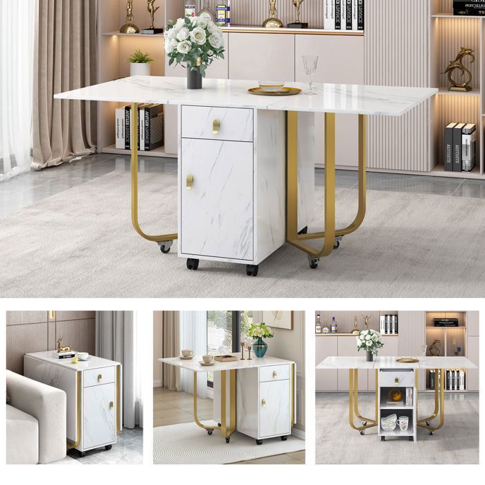 Salut pour les petits espaces ! Cette table de cuisine RELOVE est ultra pratique : elle se plie ! Avec ses 2 abattants, elle passe de 28,1 cm de profondeur (fermée, gain de place) à 103 cm (ouverte, pour 4-6 personnes). En panneaux de particules mélamine (épaisseur 15 mm), finition chêne et blanc, design moderne et facile à nettoyer. Dimensions ouvertes : 103x73,4x76 cm (LxHxP). Pieds pivotants, montage simple. Idéale en cuisine, salle à manger, ou même en bureau d'appoint. Polyvalente, élégante et maligne !